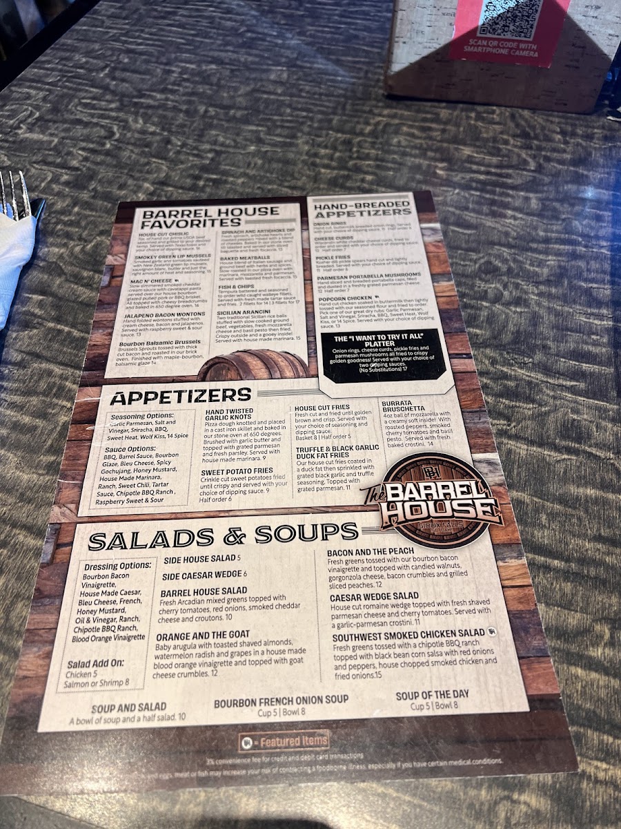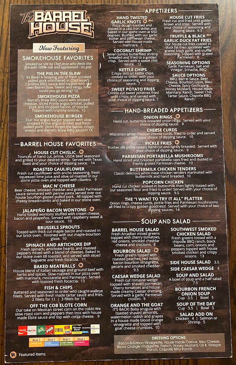 Aged provolone, house candied bacon and cartelized onions all smothered in our Barrel House bourbon glaze.