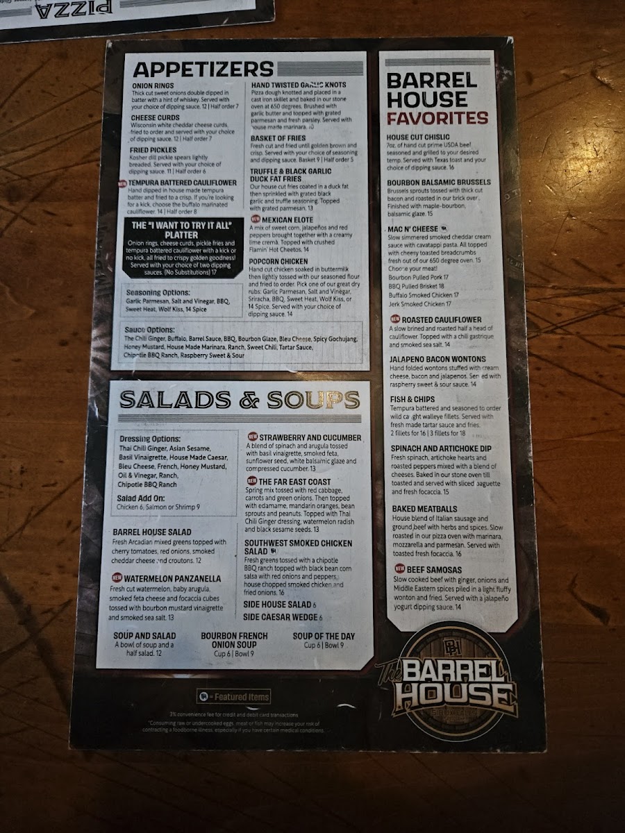 Pepper jack cheese topped with a pile of our hand breaded cheese curds and Barrel House Sauce.
